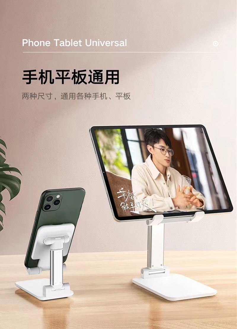 材质:ABS原料+铝合金属漆杆; 颜色:白色 产品尺寸(折叠后):110*66*27mm 包装尺寸:17*8*2.5cm 财滚滚可伸缩折叠手机支架 自由伸缩高度可调 手机平板通用,稳固防滑不晃动