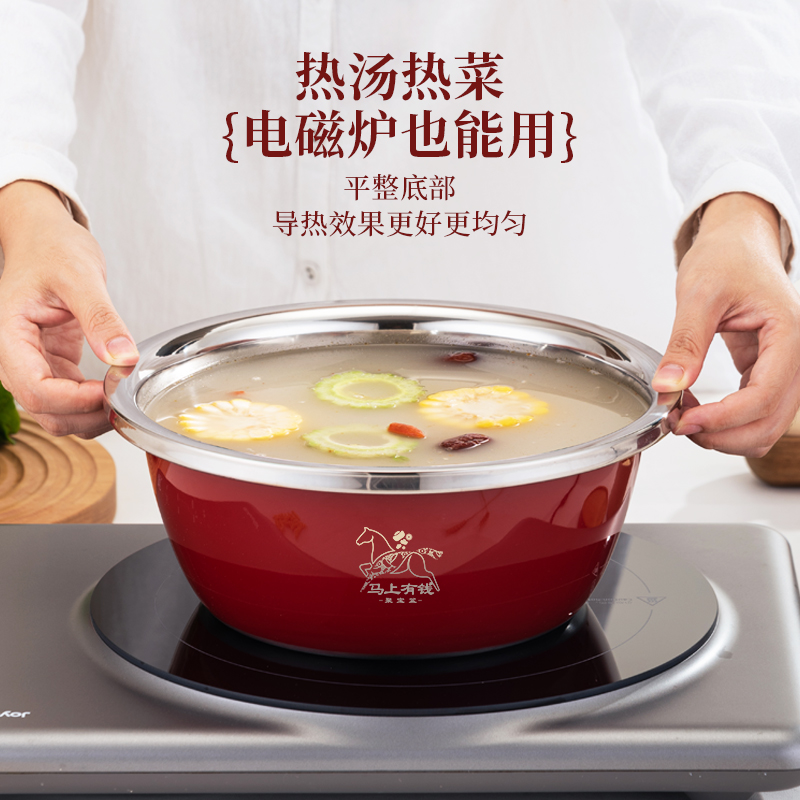 产品规格 : 24-26cm 产品材质 : 201不锈钢 包装方式 : opp透明袋+手提彩盒 彩盒尺寸:26.7cm * 11.7cm * 26.7cm 聚宝盆,顾名思义就是装满金银财宝,取之不尽用之不完的宝盆。送礼送聚宝盆,美好寓意,广纳八方财富,汇聚四方鸿运。寓意:生活美好,事业兴旺,红红火火,宝盆在手财运相伴。好礼品,是日日用得上,为你的消费者从日常生活入手,低成本高效益,